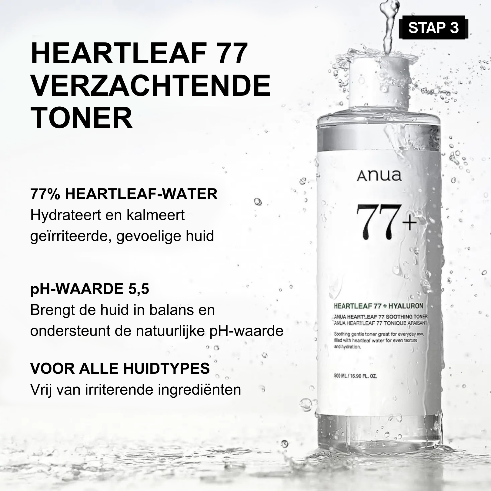 Een kalmerende toner met 77% Heartleaf-extract die roodheid vermindert, irritatie verzacht en de huid in balans brengt, zodat je huid klaar is voor de rest van je routine.
